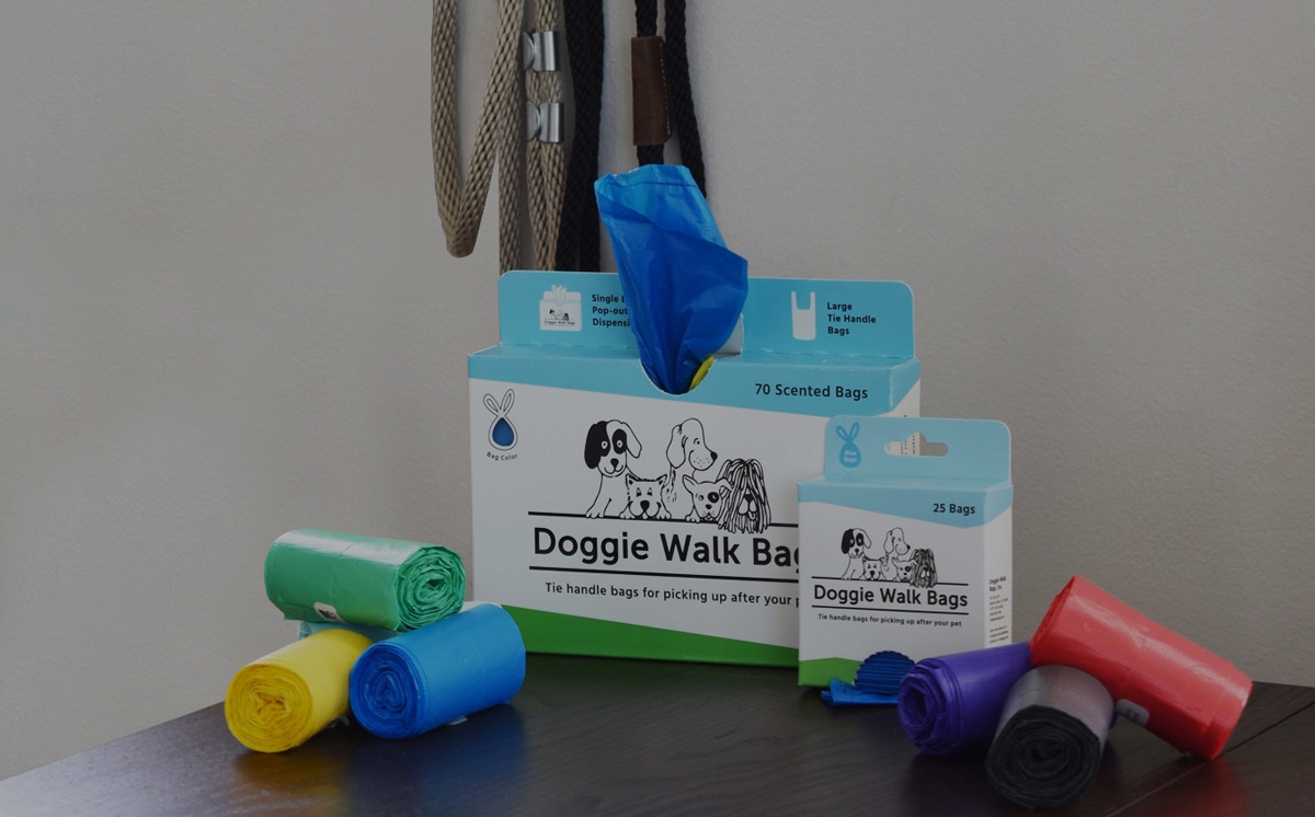 Picking up should be a breeze, that's why we have perfected our tie handle bags. In 1988, we were the first dog waste bag to the market. We are proud of our history and to be able to continue to provide our Doggie Walk Bags to loyal customers Worldwide.